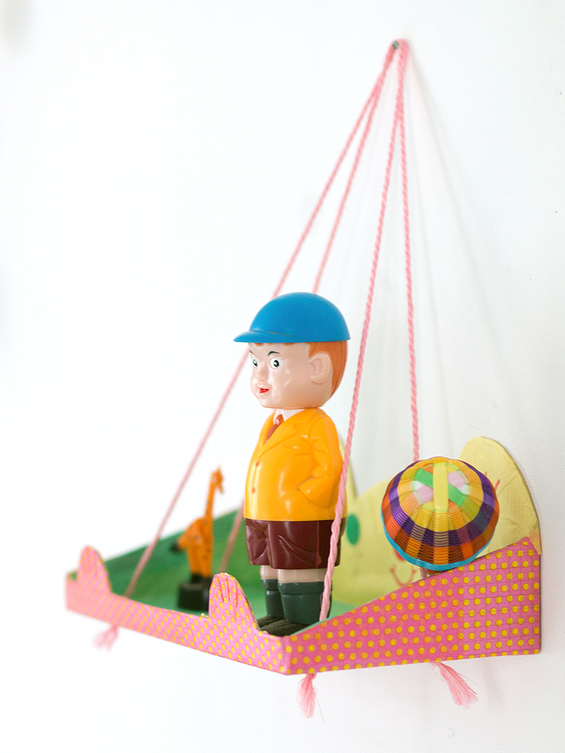una estantería flotante super graciosa reciclando una caja de zapatos.